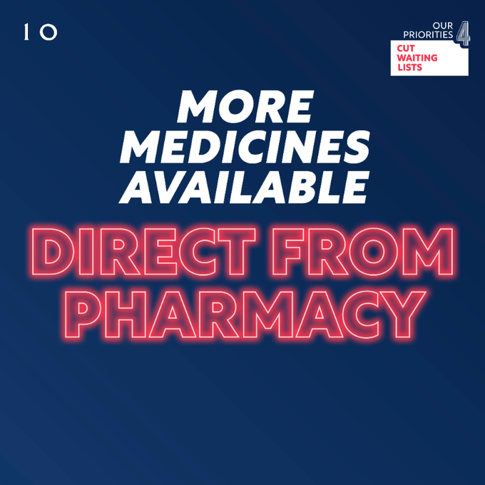 - The Conservative government has made progress to cut waiting lists but there is more that can be done to make better use of professionals such as pharmacists to cut them further. That is why today we are launching Pharmacy First as part of our primary care recovery plan, meaning pharmacists can treat seven common health conditions such as sinusitis and earache without patients needing to see a GP.
