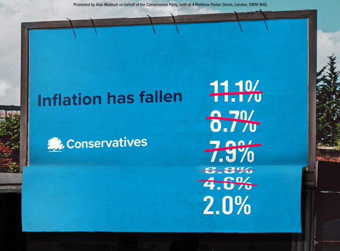 Because the Conservative government has stuck to a clear plan, inflation is back at the Bank of England’s 2.0 per cent target, the lowest point since July 2021, down from its peak of 11.1 per cent in October 2022. That means we can afford to cut taxes to put more money in people’s pockets.
